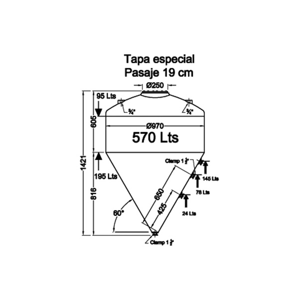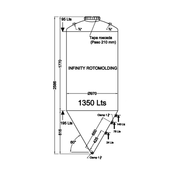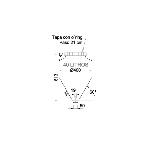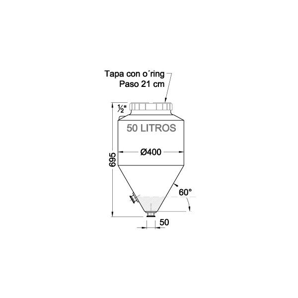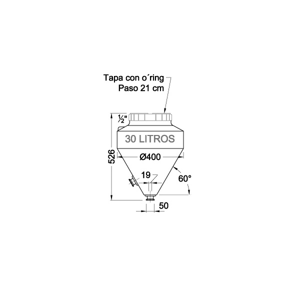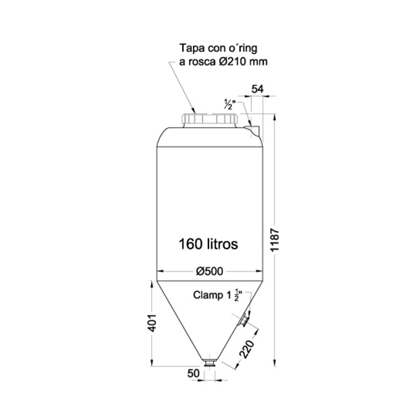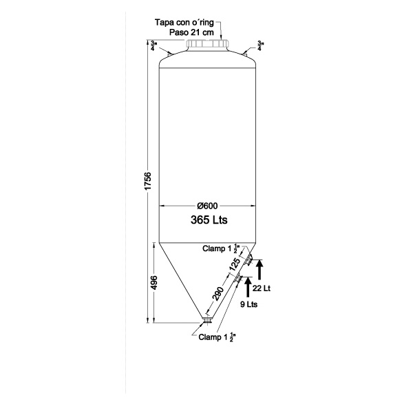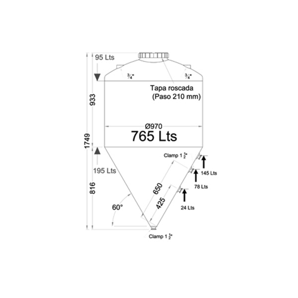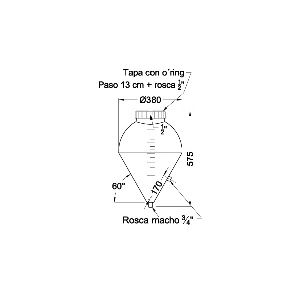 Poseen un tubo principal de 4″ y dos tubos de 13mm de diámetro enroscados en la punta (rosca BSP 1⁄4) donde se debe conectar el abastecimiento del fluido. Incluyen la vaina con conector para colocar el sensor de temperatura. Tapa en la que va ensamblado, verde a rosca o blanca con 10 insertos.
